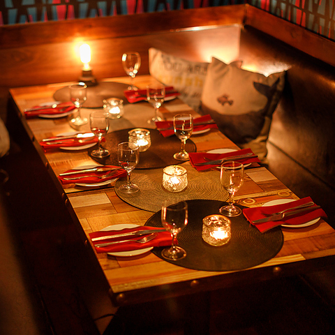 温かみのある照明に包まれた開放的な店内は、会社宴会や打ち上げにぴったり。テーブルをつなげれば大人数でもゆったりとお座りいただけます。周囲を気にせず盛り上がれる空間で、豪快なシュラスコとともに特別な時間をお楽しみください。