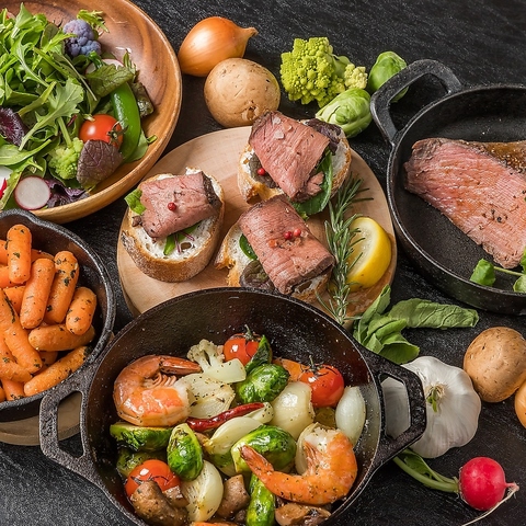 シュラスコだけでなく、肉の旨みを引き立てる創作イタリアンにもこだわっています。旬の食材を取り入れた前菜や彩り豊かなサラダ、ワインに合う温菜など、丁寧に仕上げた一皿が揃います。重たくなりすぎないバランスを大切にしているため、最後まで心地よく楽しめる構成。普段使いはもちろん、記念日やデートにも選びたくなる内容です。