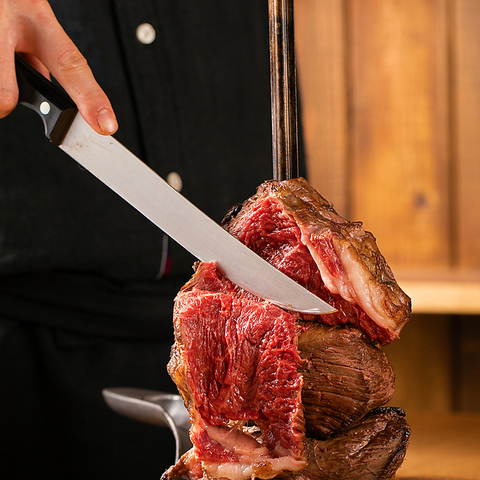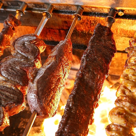 牛・豚・鶏を豪快に炭火焼き。外は香ばしく中はジューシーな本格シュラスコ。