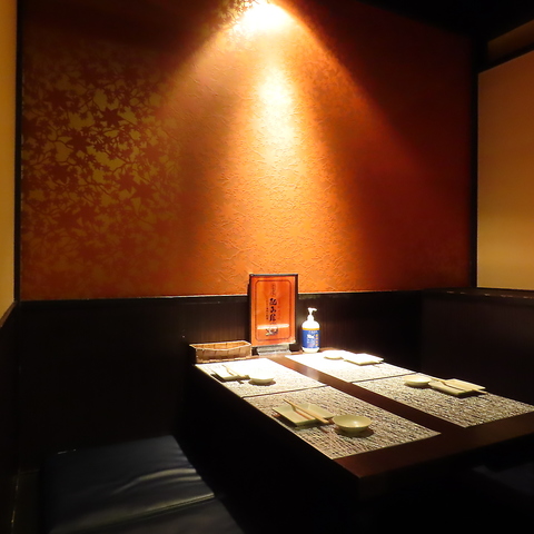 団体様でのご利用にも最適な掘りごたつ個室。優しく灯る間接照明が印象的な個室空間となっております。飲み会や宴会はもちろん、会社宴会、歓送迎会にもおすすめです。