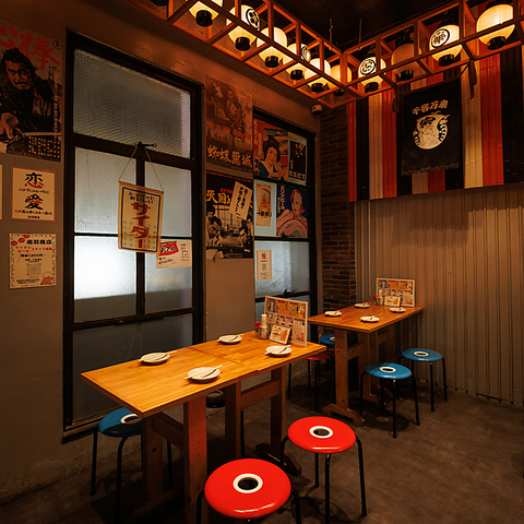 | テーブル | 4名様×8 | 【1階】昭和レトロなポスターがどこか懐かしさを感じさせる店内!少人数の飲み会からグループ宴会まで対応可能!仕事帰りの一杯や週末の宴会・飲み会、貸切利用にも最適な広々空間です! |