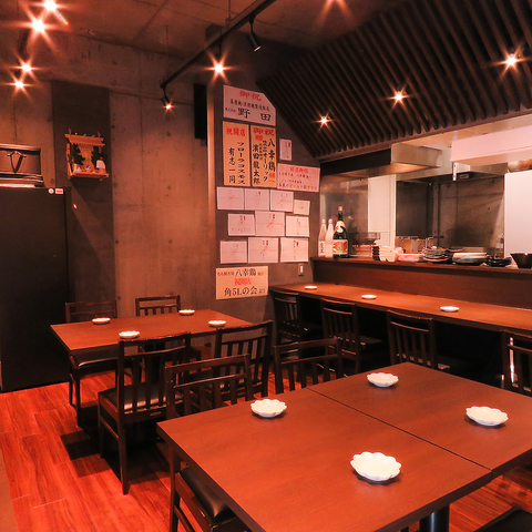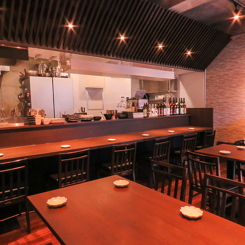 広々としたテーブル席と、目の前で調理風景が楽しめるライブ感満載のカウンター席を完備。温かみのある照明が灯る店内は、デートや友人との食事、会社帰りのサク飲みなど、どんな場面でもリラックスしてお過ごしいただける開放的な空間です。美味しい香りに包まれながら、大切な方と特別なひとときをお過ごしください。
