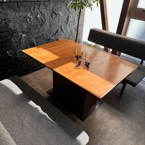 木の温もりに包まれた店内には、4名テーブルやソファ席に加え、気軽に利用できるカウンター席も完備。お一人様でも大歓迎です。穏やかな空間で、時間を気にせずゆっくりお過ごしいただけます。