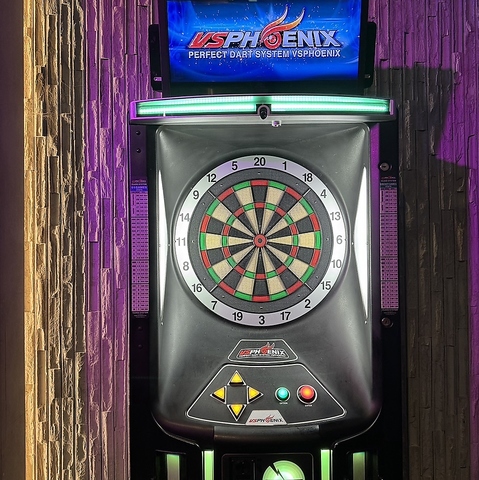 【ダーツあり】店内に設置されたダーツマシンは、お酒を片手に誰もが気軽に楽しめる人気のアミューズメントです。