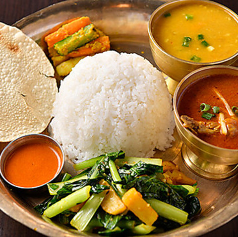 豆スープとお米を主食としたネパールの伝統的な家庭料理 「ディナーダルバートセット」 1300円(税込)