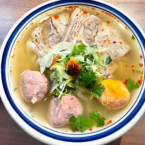 看板メニューの「特性牛肉フォー」は、牛骨を長時間じっくり煮込み、数種類の牛肉を贅沢に使用した当店自慢の一杯!柔らかい牛肉と、深いコクと旨みたっぷりの牛骨スープは、心もお腹も満たされる奥深い味わいです。