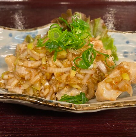 ジューシーな若鶏を、素材の味を引き立てる岩塩でシンプルかつ丁寧に焼き上げました。皮目はパリッと、中はふっくらとした食感が楽しめます。ビールや焼酎との相性も抜群な「若鶏岩塩焼き」は、一皿700円(税込)でご提供しております。※税込金額か不明の価格です。正確な価格は店舗へ直接ご確認ください。