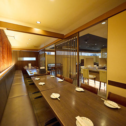 席ごとに仕切りがありますが、取り外しが可能◎大部屋に変化させれば最大20名様まで楽しめる空間になります♪2時間飲み放題付きのコースがあり、コスパは十分☆旬の食材を使った逸品でおもてなしいたします。落ち着きある、それでいて粋を感じる大人な空間。ちょっとした贅沢を味わってください!本町駅すぐで地下街直結。誘いやすさも◎