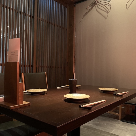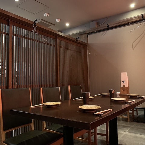 個室のお部屋もご用意◎座り心地の良いゆったりとしたお席には間接照明の温もりが優しく灯り、優雅な大人の時を演出します。大切なご接待やご家族での記念日など、心に残る大切なシーンを、洗練された空間でこだわり料理と共に心を込めておもてな致します。名古屋駅、名駅、個室、名古屋、焼鳥、名古屋駅エリア居酒屋