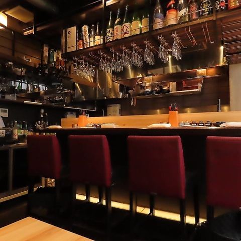 ふらりと立ち寄れるアットホームな雰囲気。温もりのあるカウンター席で自分へのご褒美タイムを気軽に満喫◎