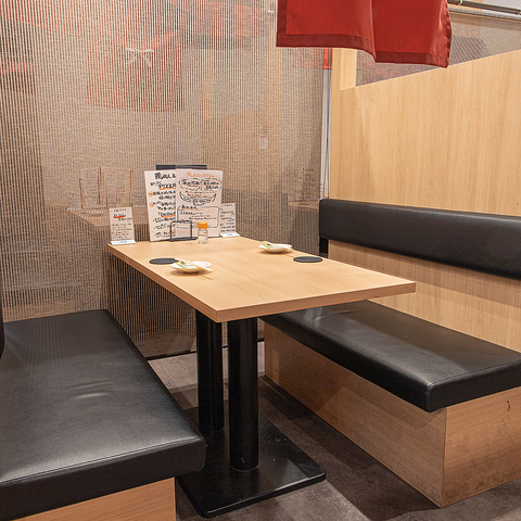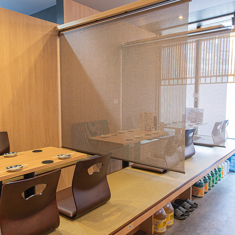 プライベート感を大切にしたいシーンに最適な、のれんで仕切られた半個室をご用意しております。周囲を気にせず、ゆったりとお食事や会話をお楽しみいただけるのが魅力です。お席を繋げることも可能ですので、少人数から団体様まで、どんな人数にも柔軟に対応いたします。ぜひ当店の落ち着いた空間をご活用ください◎