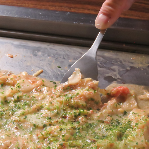 出来立て熱々を楽しむもんじゃ焼き!こだわりの自家製出汁をベースにしたもんじゃ焼きは、スタッフが目の前で調理するライブ感も一緒にお楽しみいただけます。鉄板の上でじゅわっと広がる香りはまさに絶品◎ハフハフしながら食べる出来立ての美味しさは、一度食べたら忘れられない本格的な味わいです。