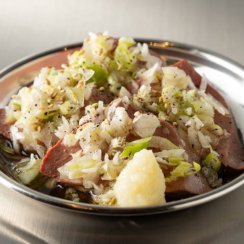 新鮮な豚レバーを網で丁寧に包み込みました。網の上で焼くことで、外側の網脂がカリッと香ばしく弾け、中のレバーを自身の脂で蒸し焼き状態に。閉じ込められた旨味と、驚くほどクリーミーで濃厚な食感は、まさにフォアグラのような贅沢さ。レバーが苦手な方にこそ、ぜひ一度食べていただきたい一品です!