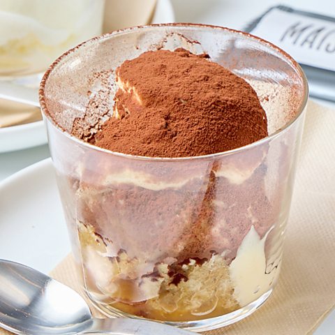 デザートの看板メニュー「ティラミス」は、毎日キッチンで手作り。鮮度を保つため、2日ごとに新しいものへ入れ替えています。いつでも作りたてのようなフレッシュな味わいと、マスカルポーネの濃厚なコクが口いっぱいに広がります。イタリアンで8年研鑽を積んだ店主のこだわりが凝縮された、食後の必須メニューです。