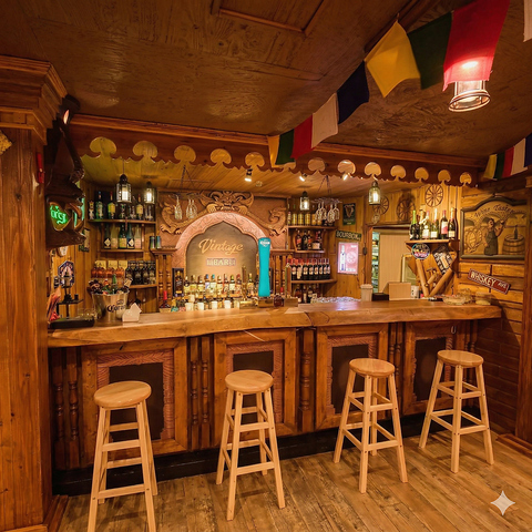 木の香りと鮮やかな旗に包まれた店内は、最大36名で楽しめる大人の遊び場。本格ステージと大型スクリーンを完備し、ライブ演奏やパーティーが最高に盛り上がります!広々とした空間は貸切にも最適。日常を忘れさせる異国の雰囲気の中で、仲間と一緒に特別なひとときを演出してみませんか?