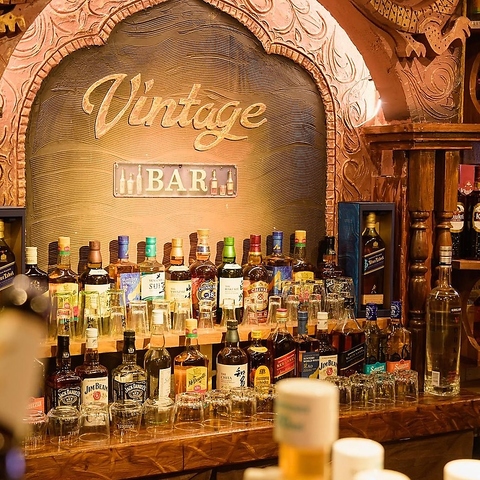 時を忘れる大人の隠れ家、「Vintage 」。ドラゴンが刻まれた、重厚で精巧な木製アーチがあなたを迎えます。棚にはマッカラン、響、山崎といった世界中の希少なウイスキーが並び、温かい光が至福の一杯を照らします。厳選されたグラスで、特別な夜を過ごしませんか?