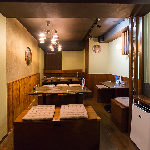 ゆったりとした時が流れる大人の隠れ家。木の温もりを感じるカウンター席は、お一人様やデートで、美しい和食器を愛でながら静かに更ける夜を楽しむ特等席です。また、落ち着いたテーブル席は、大切な友人との語らいに最適。温かみのある器と旬の料理が、穏やかな会話にそっと彩りを添えます。