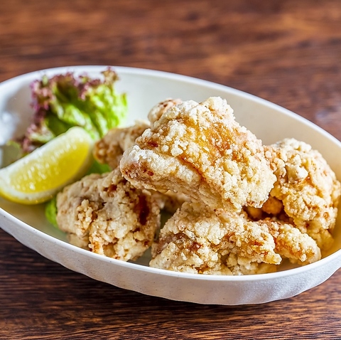 鶏肉を一晩日本茶に漬け込むこだわりの仕込みで、臭みのない柔らかい肉質を実現♪もっちりジューシーな歯ごたえに♪そのままはもちろん、レモンをかけてサッパリといただくのもおすすめ☆
