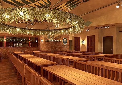 「ツムビアホフ」は世界最大のビアホール、ドイツミュンヘンの「ホフブロイハウス」を再現した本場のビアホールです。厳選ソーセージやラインハ・バルトバ、ローストチキン、冷菜オクトーバープレート、ケーゼ・シュペッツレなどが楽しめます。本場の陽気な雰囲気とドイツビールをお楽しみください。