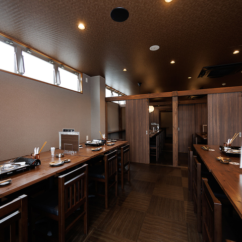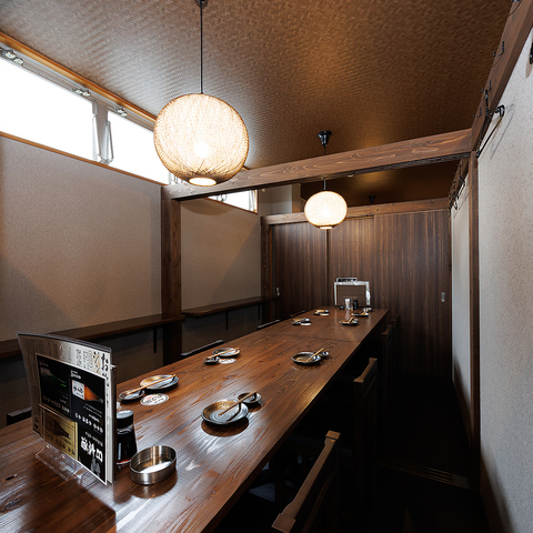 店内の貸切は最大35名様まで承ります。木を基調とした和空間で、和やかな雰囲気の中お酒を楽しむひとときは格別です。会社宴会や同窓会など各種ご宴会にぜひご利用ください。