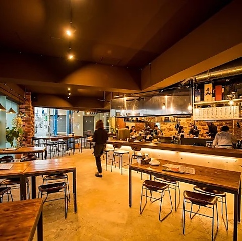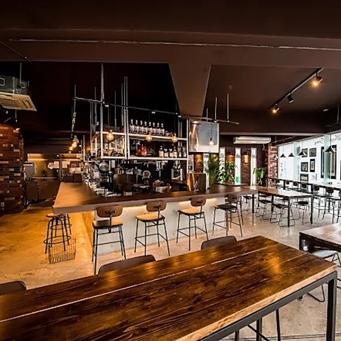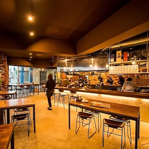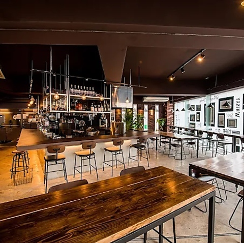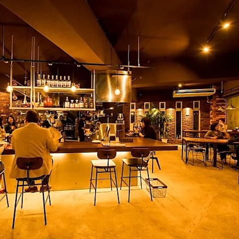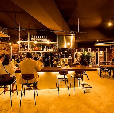 一歩足を踏み入れれば、そこには温かみのあるレンガ壁とコンクリートが調和した、モダンで開放的な空間が広がります。照明を落としたシックな内装は、大人の隠れ家にふさわしい落ち着いた雰囲気。お仕事帰りの一杯や大切な方との語らいに、上質なひとときを演出いたします。日常を忘れ、ゆったりとした時間の流れをお愉しみください◎