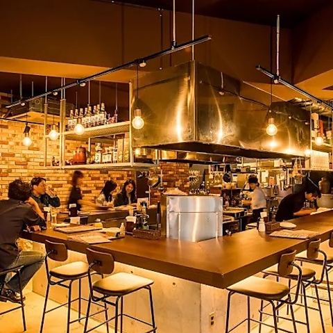 オープンキッチンのライブ感を愉しめるカウンター席。落ち着いた雰囲気はサク飲みやデートに最適です◎