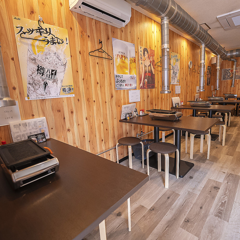 明るく開放感のあるフロアは、小さなお子様連れからご年配の方まで、三世代が気兼ねなく集まれる温かい空間です。網を囲んで賑やかに過ごせるテーブル席は、家族の会話を弾ませる特等席。世代を問わず誰もが居心地よく過ごせる、笑顔の絶えない「熱い」団らんの場を提供いたします。休日のお出かけにぜひご利用ください。