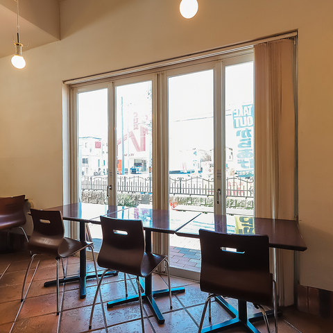 少人数にぴったりのテーブル席は、お洒落な空間でゆっくり食事を楽しめます。リラックス感に満ちています!