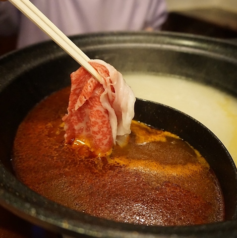 ※しゃぶしゃぶの場合、3種類(昆布・鰹出汁、麻辣出汁、鳥白出汁)から2種類の出汁が選べます。※お肉の量がすき焼きより多くなっています。