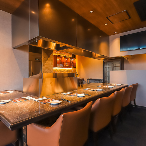 目の前の大きな鉄板で焼き上げる職人の躍動感を間近に楽しめます。全7席のカウンター席は、鉄板料理の醍醐味である「音・香り・技」をダイレクトに体感できる特等席。お一人様での晩酌はもちろん、大人のデートにも最適です。出来たての熱々をすぐにお召し上がりいただける贅沢をお楽しみください。
