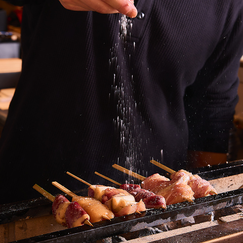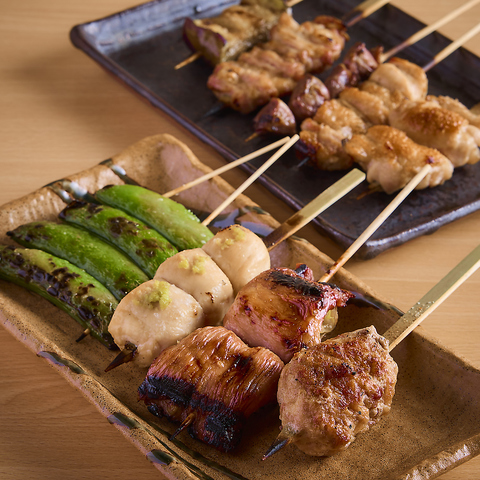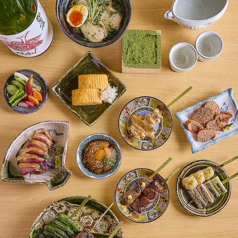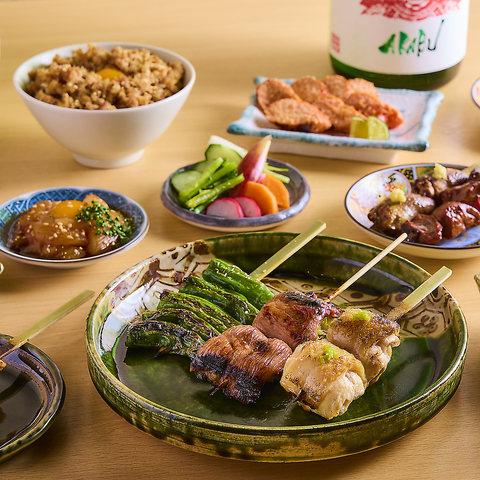 焼き鳥はもちろん、ししとうや椎茸など香ばしく焼き上げた野菜串や、ささみ昆布〆や鶏たたきなど鮮度を活かした一品、さらに、ふわっと出汁香る焼鳥屋のだし巻き玉子や炭焼き明太子など、お酒が進む逸品をご用意!〆料理も鶏そぼろ丼や鶏そばなど最後まで楽しめるラインナップを取り揃えております!