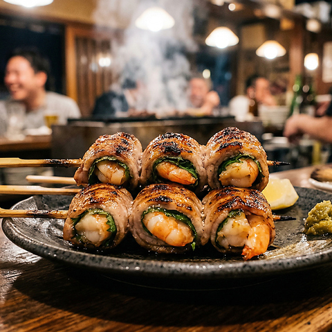 ぷりぷりの海老を贅沢に使用した人気のえび巻き。噛んだ瞬間に広がる海老の旨みと香ばしさがクセになる一品です。お酒との相性も抜群で、リピーター続出の看板メニューをぜひご賞味ください。