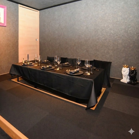 [個室]モダンなフレンチ・イタリアンの空間でありながら、足元を楽に過ごせる「掘りごたつ式」の個室を完備。最大10名様まで対応可能で、お顔合わせや記念日など、特別な集まりに相応しい上質な寛ぎを提供いたします。