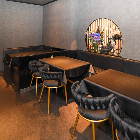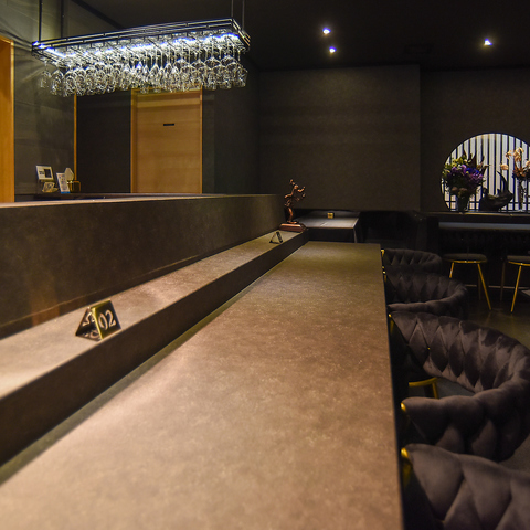 [テーブル席]シックな静寂に包まれる「nil Calme」。計算し尽くされた照明と高級感溢れるインテリアが、大切な方との語らいに華を添えます。帯広の夜を彩る、唯一無二の贅沢な時間をお過ごしください。