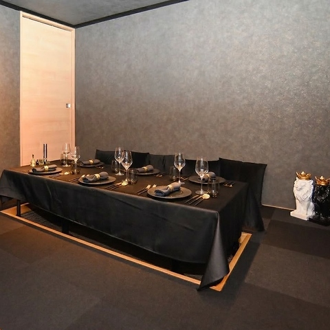 黒を基調としたモダンな空間。ゴールドが映える洗練された内装で、大切な人と特別なひとときを。