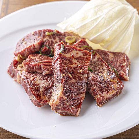 提供前にタレをもみこみ下味をつけ、さっぱりした洗いタレで堪能。余分な脂を落とし肉本来の味を楽しめる★