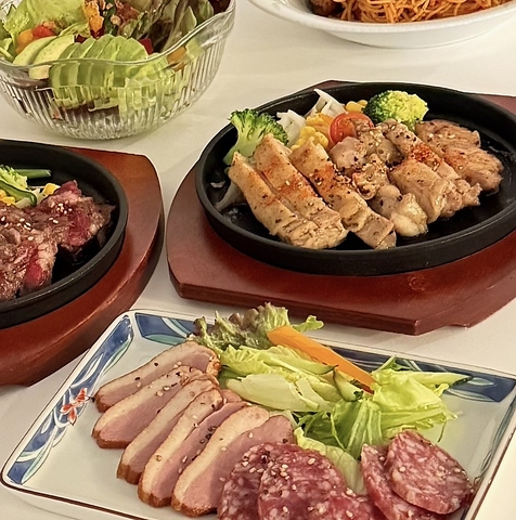 2種のお肉のステーキ盛り合わせや肉寿司盛り合わせなど、お肉料理を存分に堪能できる当店イチオシのAkariコース。ガーリックナポリタンなど全7品のボリューム満点な内容です。