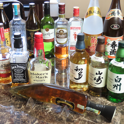 「山崎」「白州」などのジャパニーズウイスキーから、定番のバーボン、ネパールのラム酒「ククリラム」まで、お酒好きにはたまらない充実のラインナップ!焼酎やカクテル、ソフトドリンクも豊富にご用意。お仕事帰りの一杯から、お肉とお酒をじっくり味わう夜まで、お好みのお酒で最高の時間を