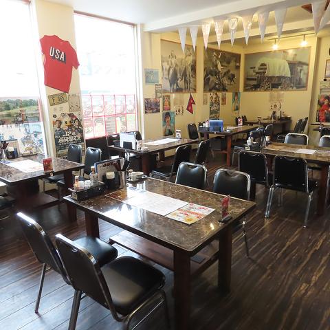 大きな窓から自然光がたっぷり差し込む、明るく開放的なテーブル席。広々と使える大理石調のテーブルは、休日のご家族でのランチや、ご友人同士でワイワイ楽しむディナーにぴったりです!ゆったりとくつろげるアットホームな空間で、絶品ステーキとチーズナンをお腹いっぱいご堪能ください♪