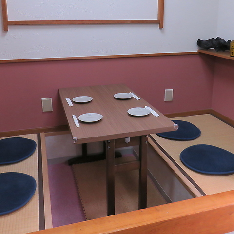 ゆったりと足を伸ばして寛げる掘りごたつ席をご用意しております。他のお席よりも少し広めのスペースを確保しているため、体勢も崩しやすく、小さなお子様や赤ちゃん連れの方も安心です。ご家族での団らんを大切にできるようなお店作りをしております。ファミリーにイチオシの温かな空間でお待ちしております。