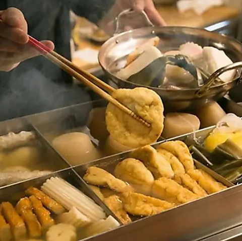 仕事帰りにふらりと立ち寄れる温かみが魅力の一軒。お一人様でも気兼ねなく寛げるカウンター席は日々の疲れを癒やすサラリーマンに好評です。看板メニューは、出汁の旨味が芯まで染み渡った自慢のおでん。深夜まで営業しているため、遅めの夕食や二軒目利用にも。美味しい料理と共に、心安らぐ夜をお過ごしください。
