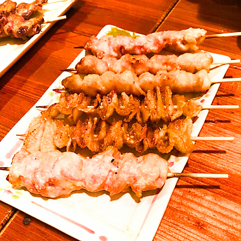 朝締め鶏の弾力と旨みを活かした串焼きは、種類の豊富さも魅力。ももやねぎまの定番から、ハツ・なんこつ・砂肝・うずら・豚バラトマトまで楽しめます。部位ごとに焼き加減を調整し、炭火で香ばしく仕上げて素材の良さを引き出します。飽きずに味わえるバリエーションで、好みの一串が見つかる満足度の高い焼鳥です。