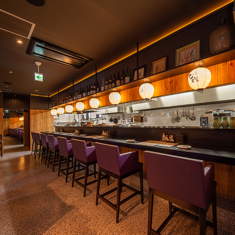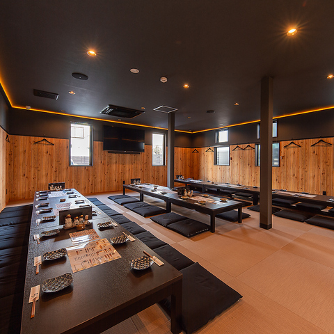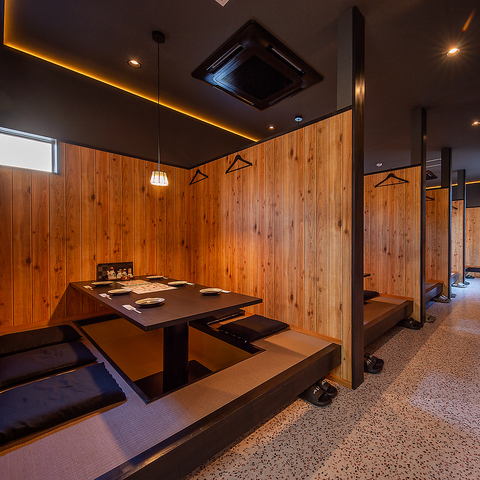 カウンター席や4名規模のテーブル席など、少人数でご利用いただける落ち着いた掘りごたつ式席の空間も◎友人やご家族同士での利用に加え、サシ飲みのデートにもおすすめです♪視線が気にならない配置と柔らかな照明が、心安らぐ特別な時間を生み出します!食事を通して親しい人との会話をより楽しめます☆