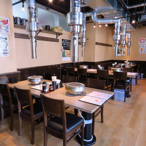 創業30年の伝統と寛ぎが溶け合う空間。各テーブルに配置された強力な無煙ダクトが、衣服への匂いを気にせず焼肉に没頭できる心地よい時間を演出します。店内は一体感に優れた正方形の造りで、30名様の大宴会でもお席が分断されません。さらに足を伸ばせる掘りごたつ座敷は、お子様連れでも安心して過ごせる特等席です!