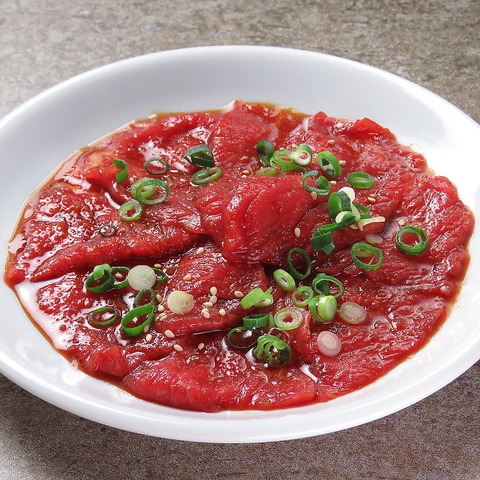 業者様との綿密な交渉で仕入れた上質な部位は、分厚いのに驚くほど柔らかな食感です。レモン汁は使わず、溢れ出すジューシーな肉汁をそのまま味わうのが焼肉苑流。タン本来の力強い旨味と、こだわり抜いた鮮度の高さを実感してください!