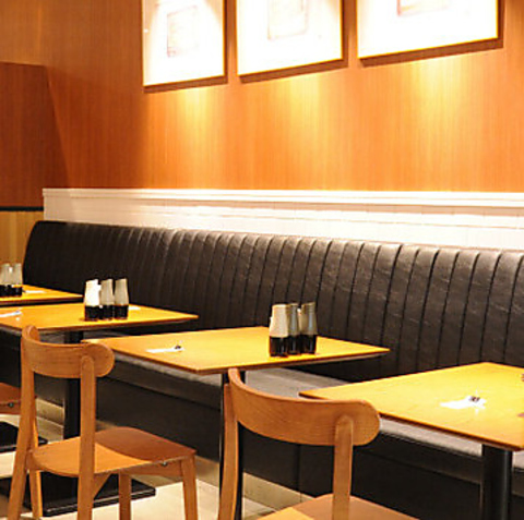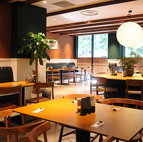 和モダンで落ち着いたテーブル席。広々としたソファは、友人や家族とゆっくり語らう時間に最適です。