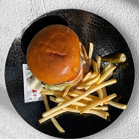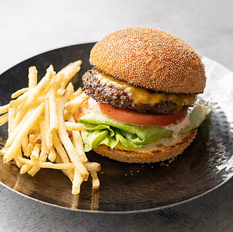 牛肉100%のパティは口に入れた瞬間、ジューシーな肉汁が溢れ出します!グリルドオニオン、トマト、レタス、チェダーチーズを重ねた絶品バーガー。単品でのお楽しみはもちろん、コース料理でもご用意しております。レストランが本気で作る本格派の味わいを、ぜひ一度ご賞味ください♪