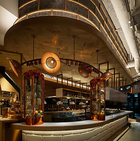 ふらりと立ち寄れるスタンディングエリア。ハッピーアワーでサクッと一杯楽しんだり、待ち合わせまでの時間に利用したりと、使い方は自由自在♪