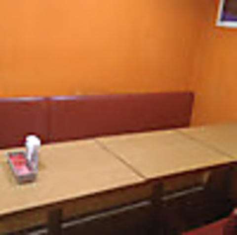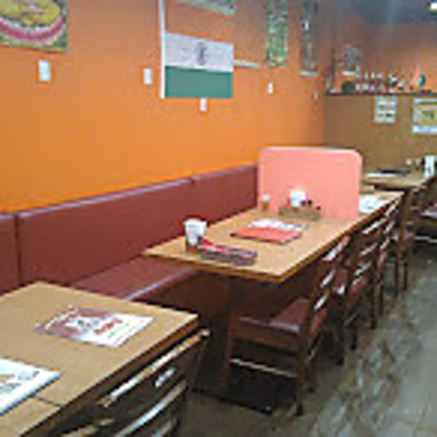 アットホームなオレンジ色の店内。広々としたソファー席は、ご家族やグループでの団欒などにも最適ですよ。