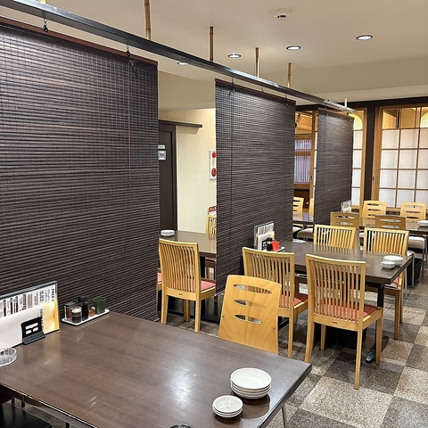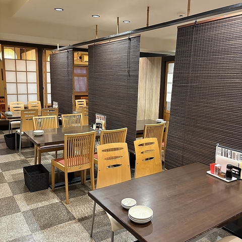 広々とした店内は開放感があり、団体様での宴会や地域のお集まりにも最適なお店です♪お座敷の席は最大65名までの大宴会も可能で、楽しい時間を共有できます。動かせる仕切りで、大人数でも一体感を持ってお過ごしいただけます。木の質感を活かしたぬくもり溢れる内装で、ごゆっくりおくつろぎください。